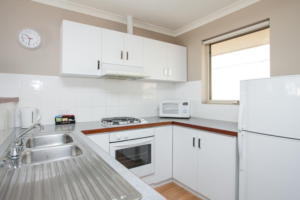 This apartment is part of our Fully Equipped range, which is perfect for the traveller wanting all the comforts of home. It features a full kitchen and a personal laundry room with a washing machine and dryer. The bedroom contains a queen sized bed.
