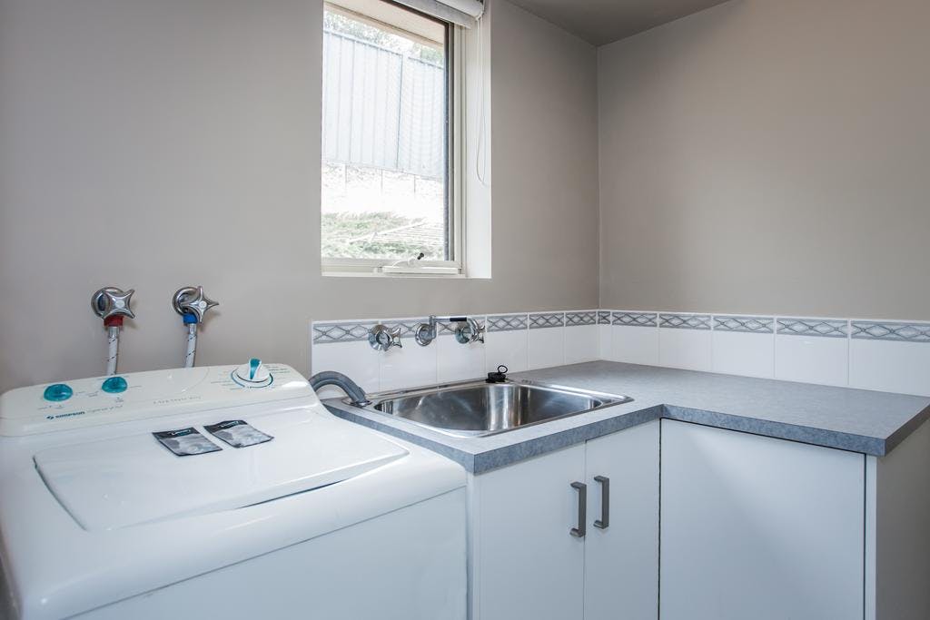 Amenities include: separate kitchen with a cook top, oven, full size refrigerator, microwave; separate living area with 2 seat lounge, 2 seat dining table, flat panel TV; a separate laundry with a washing machine, dryer and laundry sink; separate bathroom with shower; other facilities include iron and ironing board, hair dryer, undercover parking and free wireless internet.